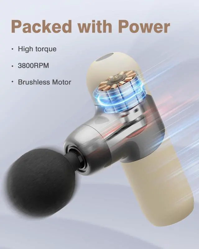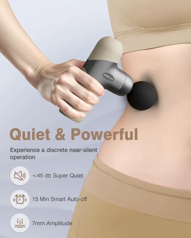 Smart 15-Minute Auto Shut-Off : Built-in safety timer prevents overheating and conserves battery life, ensuring optimal device protection during prolonged muscle therapy. Ultra-quiet brushless motor (<45dB) ensures peaceful therapy without disturbing others