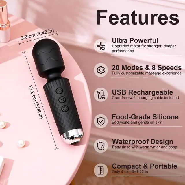 Experience full-body muscle relaxation with this ultra-portable small mini massager tool, featuring ultra-soft silicone for smooth gliding across skin. Customize your mini massager relaxation with 20 modes and 8 adjustable speeds, powered by a rechargeable cordless design. Water-resistant construction ensures easy cleaning and shower-friendly use.