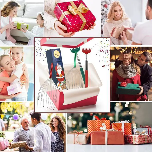 Upgraded Design: 20 finger head scratcher is an idea tool for head body stress relief and relax. It come with 2 pack head scratcher and 2 pack back scratcher and a perfect christmas theme box for gifts.