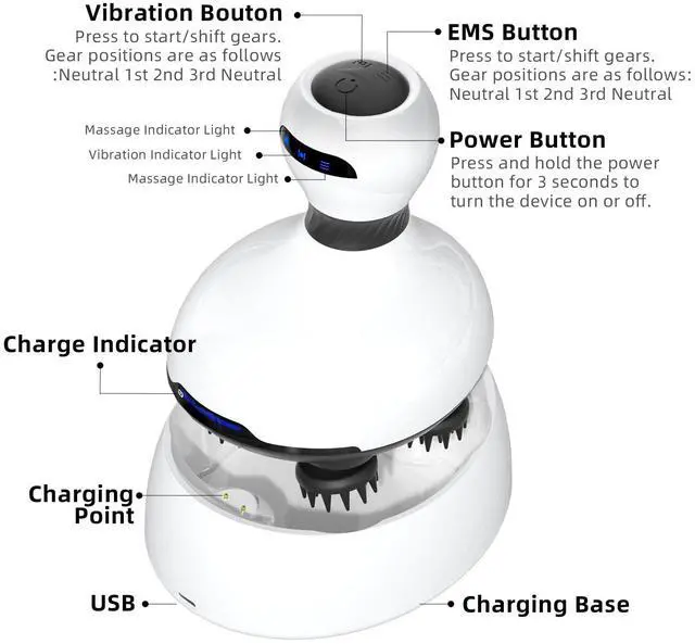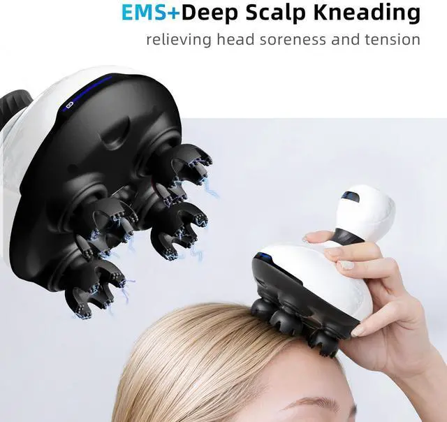 EMS Deep Hair Massager: Head massage EMS microcurrent stimulates tense scalp tissue, while layered vibration delivers comfortable scalp care. Featuring four 3D massage heads with dual-direction rotation (clockwise/counterclockwise), it provides a soothing massage experience.