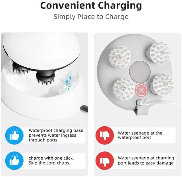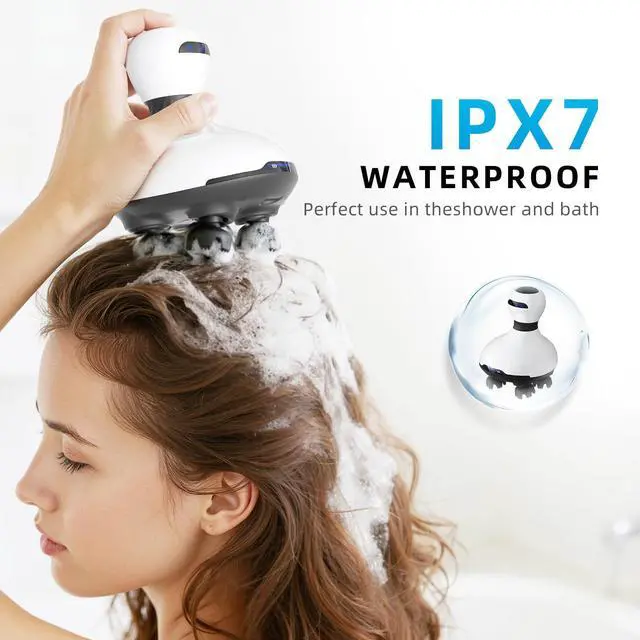 IPX7 fully waterproof & dual-use for wet and dry: The head massager features waterproof materials, allowing worry-free use during showers or baths. No need to fret about water splashes or immersion while shampooing. The massage nodes are removable for easy cleaning.