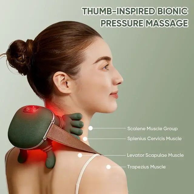 ADJUSTABLE HEAT & QUIET OPERATIONThe soothing heat function mimics natural hand warmth to enhance relaxation. Low-noise performance ensures a calm environment, suitable for home, office, or travel.