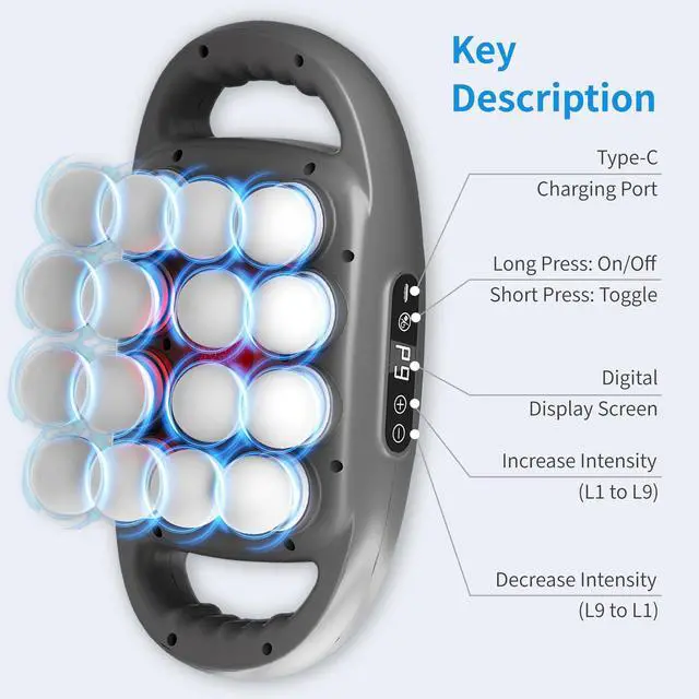 Shoulder Massa Deep Tissue Massage Gun Featuring 4 Heads & 5 Intensities for Full-Body Relief. | Precision Intensity, On Demand A Versatile Full-body Massager with 9 Intensities, From Gentle To Deep Relief. | 4 speed with pressure-feedback A powerful percussion gun with 4 speeds for personalized deep tissue relief. |