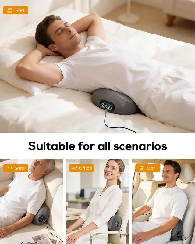 [Breathable & Skin-Friendly Fabric] Moisture-wicking, air-mesh outer fabric stays dry and comfortable without feeling stuffy. Suitable for office chairs, sofas, beds, or travel use, keeping comfort consistent throughout the day.