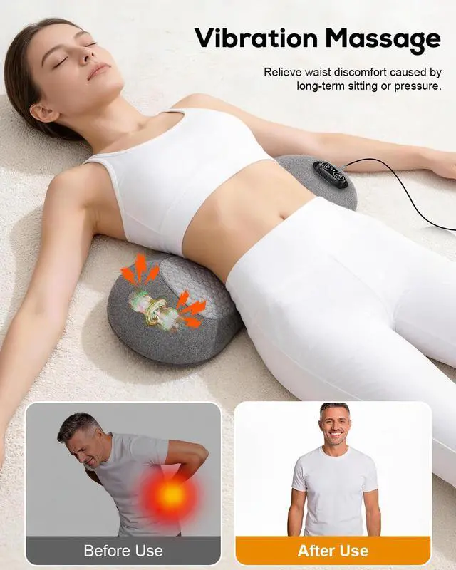 3 in 1 Lower Back Massager, Triple Fusion Back Massager with Heat, Vibration and Stretch,Lumbar Support Pillow with Ergonomic Memory Foam for Bed and Chair