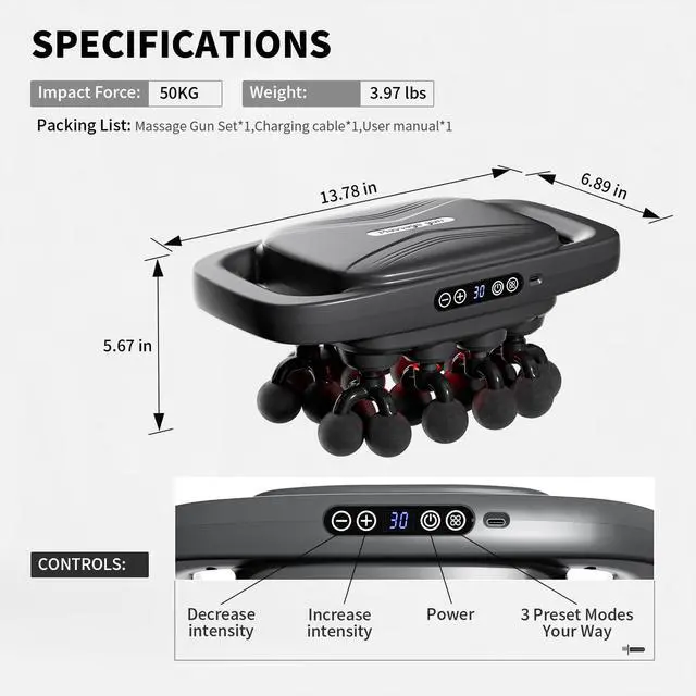 | Use for | Back, Feet, Legs, Neck |