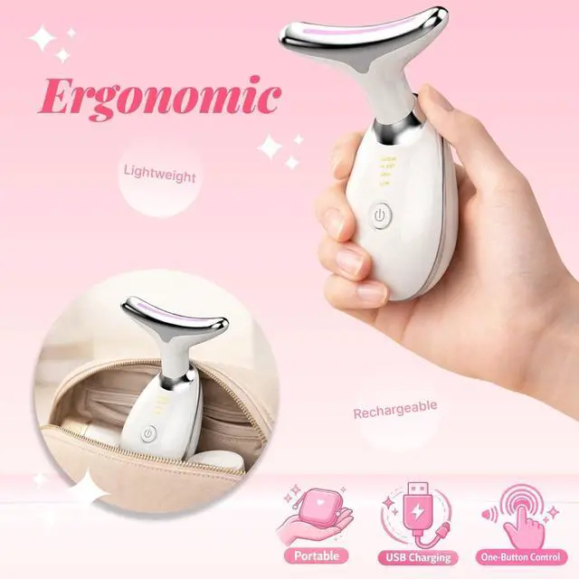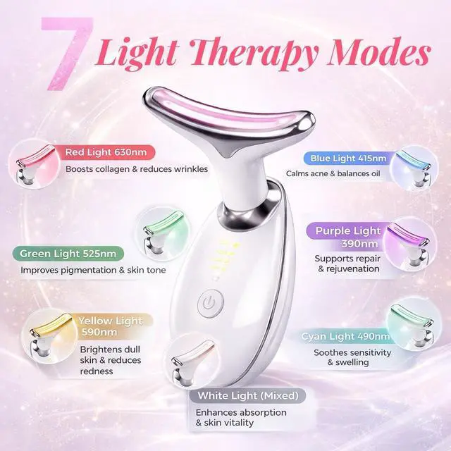Enhance your skincare routine with this Face and Neck Massager Tool featuring 7 color LED light modes. Designed for convenient home use, this portable beauty device supports a relaxing facial and neck massage experience.