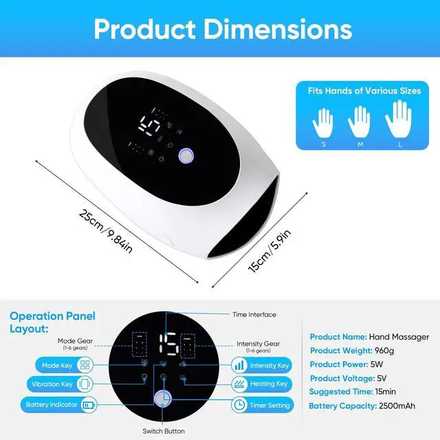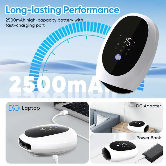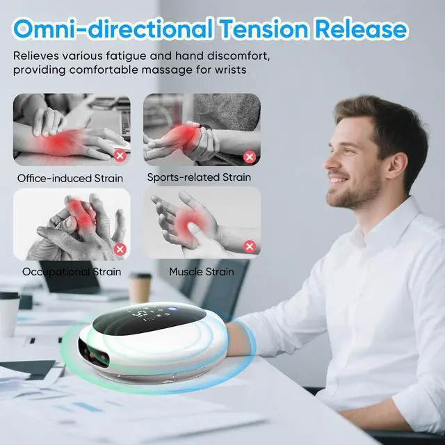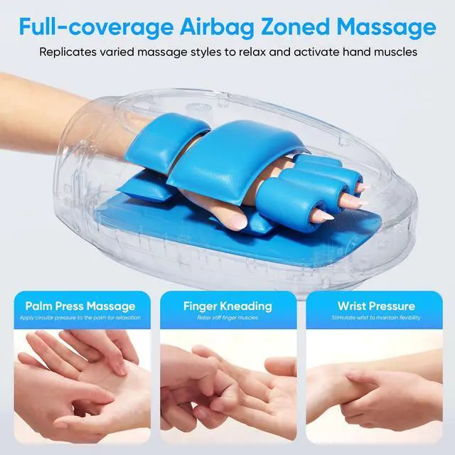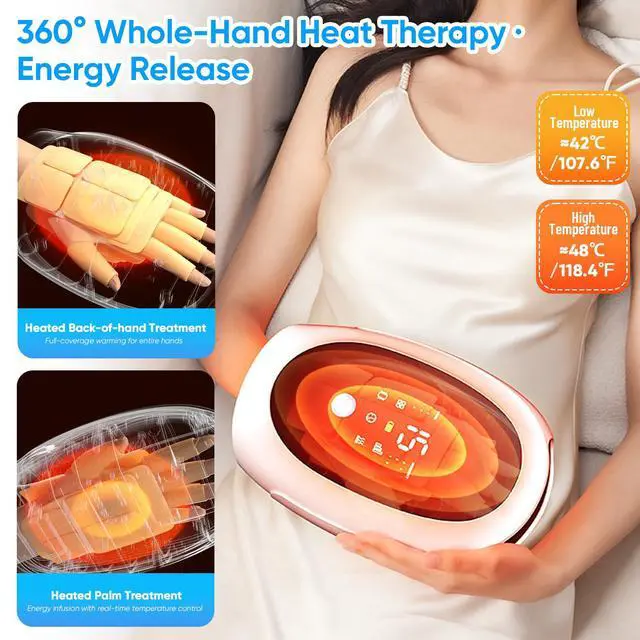 5-FINGER INDEPENDENT KNEADING Unlike traditional massagers that only offer simple air compression, our electric hand massager features dedicated kneading nodes for each of your 5 fingers. This 3-in-1 targeted therapy combines air pressure, vibration, and heat to reach deep palm tissues and finger joints, effectively addressing the "blind spots" found in ordinary devices