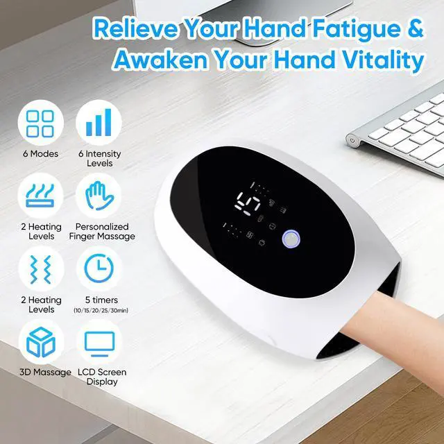 Hand Massager Heat and Compression, Deep Kneading & Intermittent Negative Pressure Therapy, 6 Modes & Intensities Electric Hand Massager Carpal Tunnel and Finger Joint Care