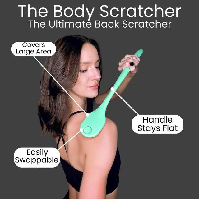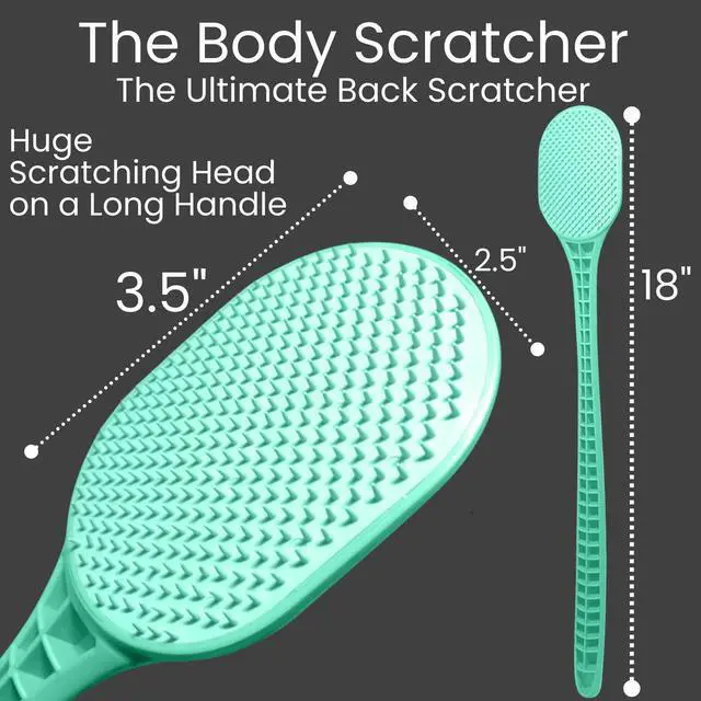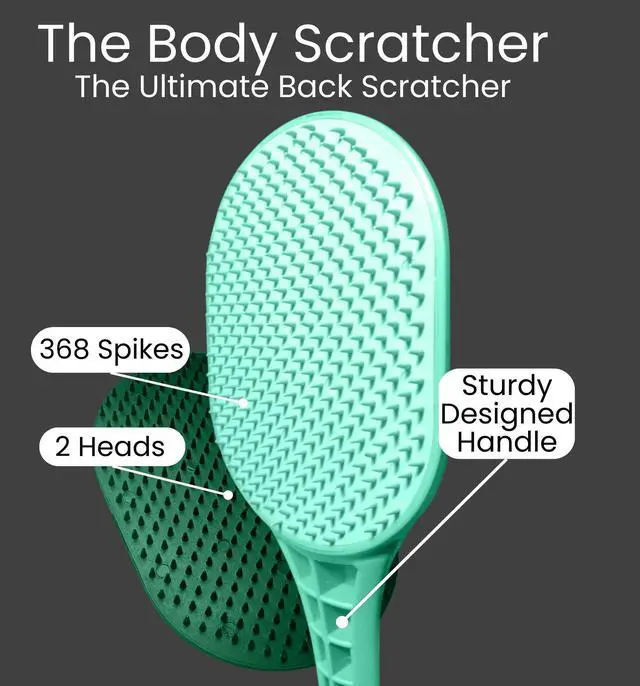 THE BACK SCRATCHER FOR EVERY ITCH: A Long Sturdy Handle with 2 Heads Each with a Different Hardness. The Soft Head is Flexible and Gentle Enough For the Face, Forehead, and Neck. The Stiff Head is Firm and Rigid For Thicker Skin Such As the Back, Arms, and Legs.