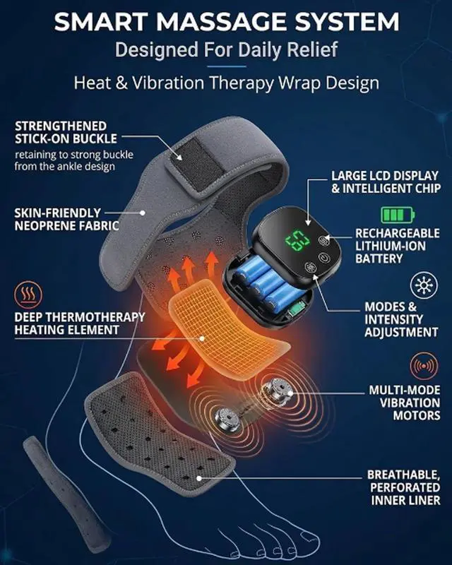 Custom Heat & Massage for All-Day Foot Comfort:Combines soothing vibration massage with adjustable heat, featuring 3 massage modes and 5 heat levels to match your comfort needsgentle warmth for relaxation or deeper massage after long days on your feet
