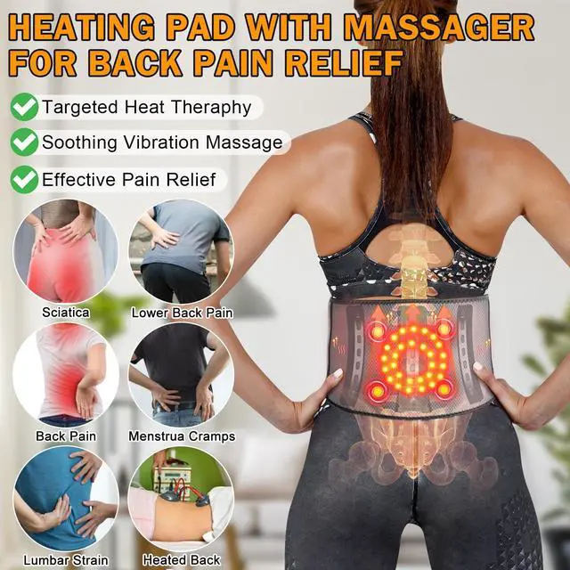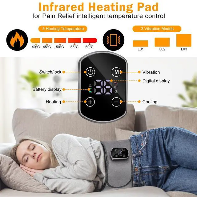 5 Heating Levels and 3 Vibration MassageThe back massager with heat has 5 heating levels and 3 intensity levels. Heating and massage function can work at the same time or alone. Temperature setting: 40-45-50-55-60. The back massager for back pain relief has 2 powerful massage motors and 3 adjustable vibration intensities for your free choice. Heating technology can provide targeted heat , combined with the vibration massage can give you the most effective relief for sore/painful areas.