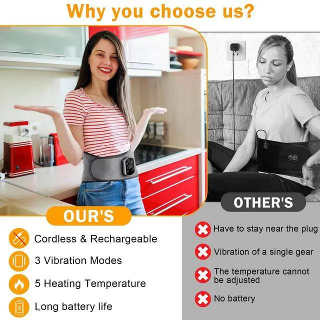 Useful Heat Belt You can use this portable heating belt on the waist, shoulder, abdomen, back, leg, knee, and other parts. Especially can be used as cordless period heating pad, brings intimate warmth to women at special times. The heat belly wrap belt can effectively relieve muscle soreness, relax muscles, relieve stress, relieve fatigue.