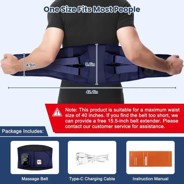 Note: This product is suitable for a maximum waist size of 40 inches. Please measure your waist before purchasing. If you find the belt too short, we can provide a free 15.5-inch belt extender, which increases the maximum waist size to 55.5 inches. Please contact our customer service for assistance.The buttons on this device are very sensitive and may be activated by accidental touch. Please read the user manual carefully and enable the button lock function before use to prevent unintended operation.