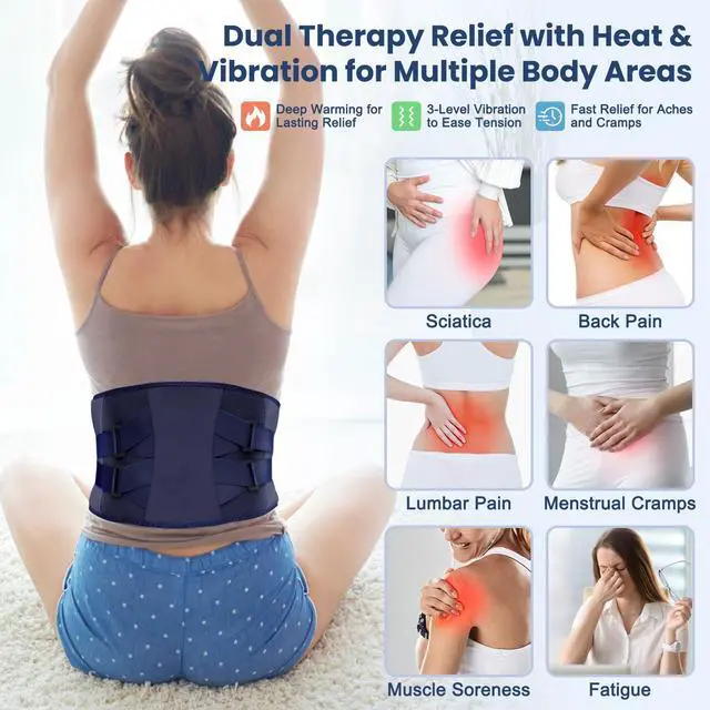 Versatile Pain Relief This multi-functional heating belt is ideal for treating various body areas, such as the lower back, waist, abdomen, knees, and legs. Its perfect for relieving muscle soreness, menstrual cramps, stress, and fatigue, offering a soothing, warm experience that helps to ease pain and tension.