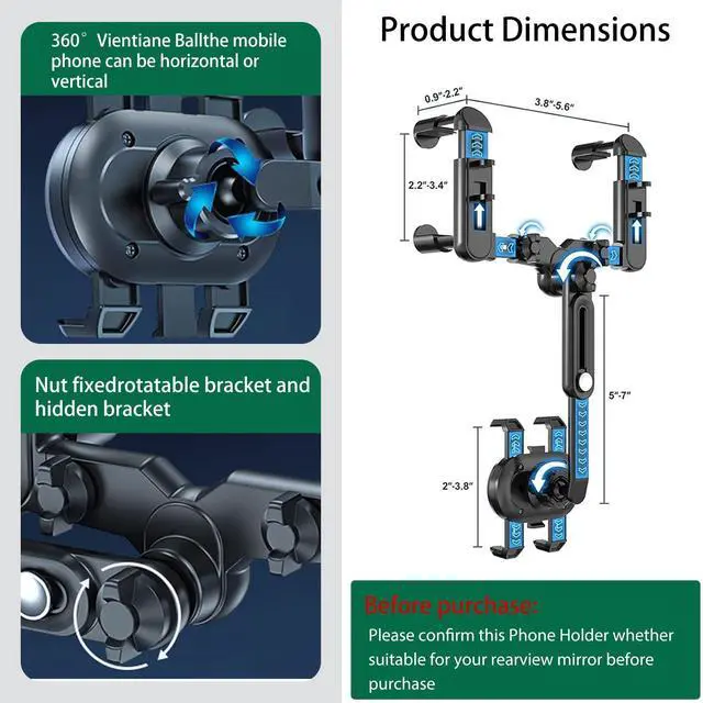 This Car Rearview Mirror Phone Holder clip can be adjusted according to the thickness, height and width of the rear view mirror