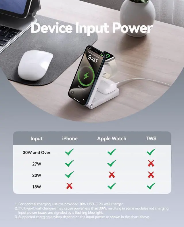 Note: Requires included 30W adapter for optimized 3-device charging.
