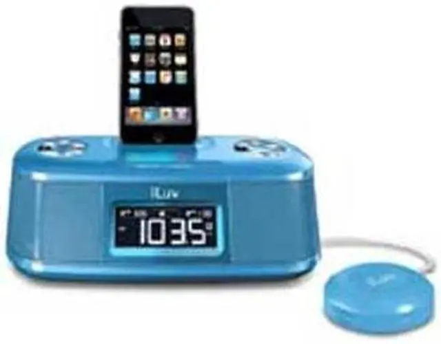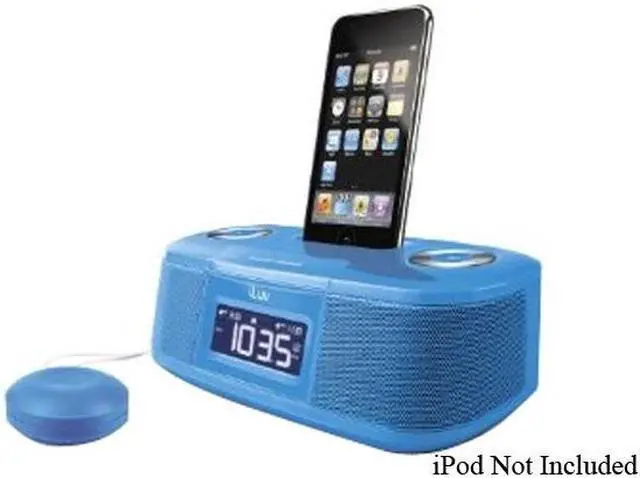 | Features | Wake up every morning to bed shaker and your favorite music Built-in speakers allow you to hear your music with depth and clarity Large display; easy to read Auxiliary line input for any audio devices with 3.5mm jack LCD dimmer level control (10 steps) iPod - Enjoy rich sound from your iPod - Plays and charges your iPod - Integrated universal dock for your iPod Digital Dual Alarm Clock - Digital clock display with dual alarm clock - Bed shaker vibrates a bed or a pillow to wake up the heaviest sleepers - Wake to iPod, FM radio, buzzer, or bed shaker - Sleep to iPod, FM radio Radio - FM radio - PLL digital tuning technology - Programmable presets for 10 radio stations |