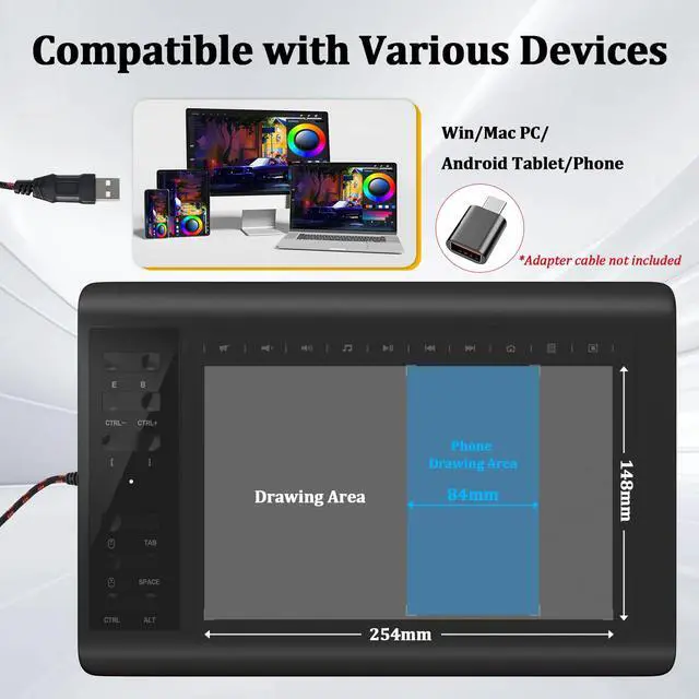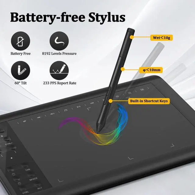 Convenient Shortcut Keys: Designed with 12 customizable shortcut keys and 10 multimedia Keys (Only Compatible for Windows), provides more convenience to help improve productivity and efficiency when creating tablet drivers with graphics tablet that allow shortcuts to many different software.