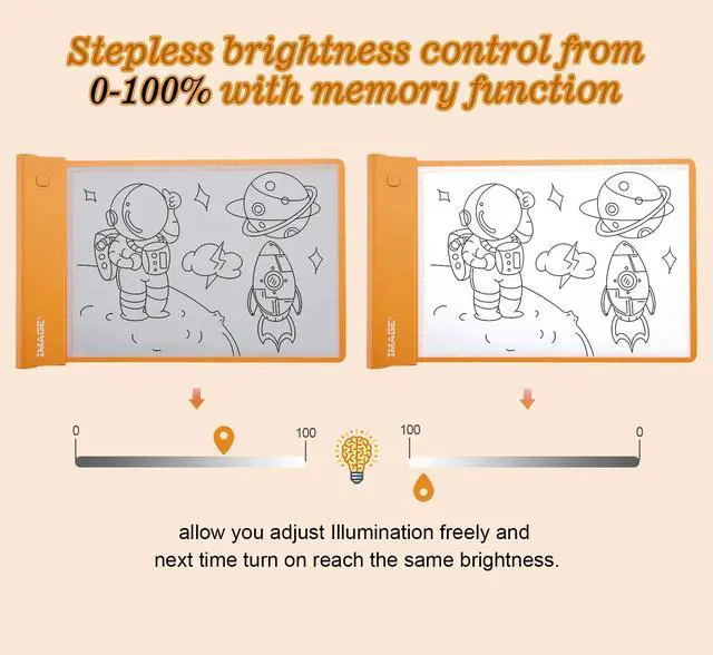 This light pad is very light and thin, battery-powered, can be carried in a bag, and it is very convenient to bring sketches or classes. And eye protection design, bright and not glaring! It is very safe, very suitable for children! Can be used as a gift for children! Of course, adults can also use it!