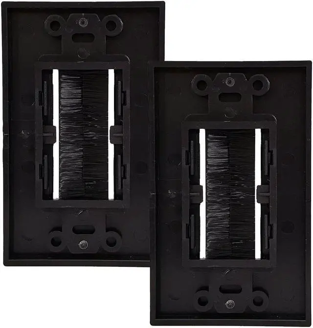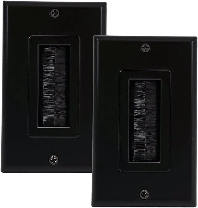 This Single gang wall plate with brush bristles allows for a clean, tidy, and professional look for your outlets. The wall plate allows the cables running behind your walls to exit the wall and connect to your devices. The aperture is large enough for VGA, HDMI, Cat5e/6 and other types of cables, creating a unified and organized home theater setup.