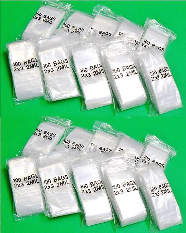 Product Features: Recyclable, Resealable, Recloseable, Reusable; Waterproof Available In The Largest Variety Of Sizes- 2Mil Thick Polyethylene A Quality Rare Amongst Buying Options - 100 Bags Per Pack Totals 2000 Per Order Re-closable Zipper Style Top Zip-lock bags are ideal for applications that require tiny to small sized re-closable bags Dimensions are 2" X 3" Measurements are of actual storage space, Natural, flexible shape, fit into places where storage boxes cannot