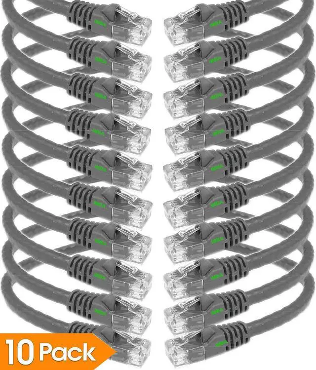 Product features (Pack of 10) iMBAPrice 100 Feet RJ45 Cat5e Snagless Molded Patch Cable Gold Plated - Grey High quality 50 micron gold plated contacts to ensure clear data transmission; full FCC part 68 compliance Molded strain relief ensures a more secure connection; keeps cable within Cat5 bending radius Lifetime Warranty Snagless-type moldings