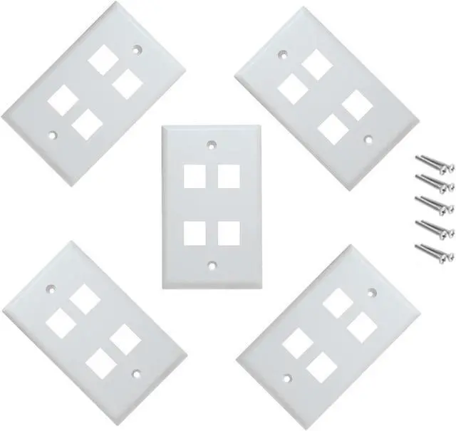 iMBAPrice 4 Port Keystone Jack Wall Plate 1-Gang - White (Pack of 5)
