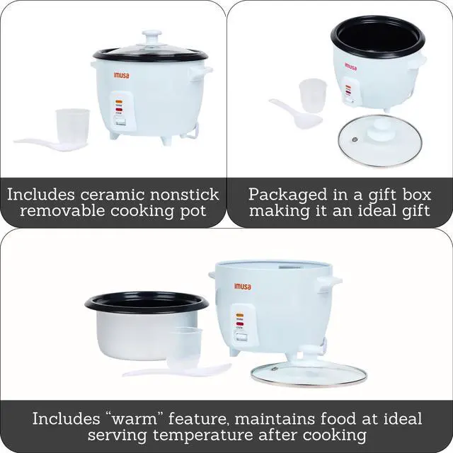 COMPACT & MODERN DESIGN: Stylish small cooker with removable ceramic pot, spoon and cup. Fits in apartments, dorm rooms, RVs, camping trips or office kitchens