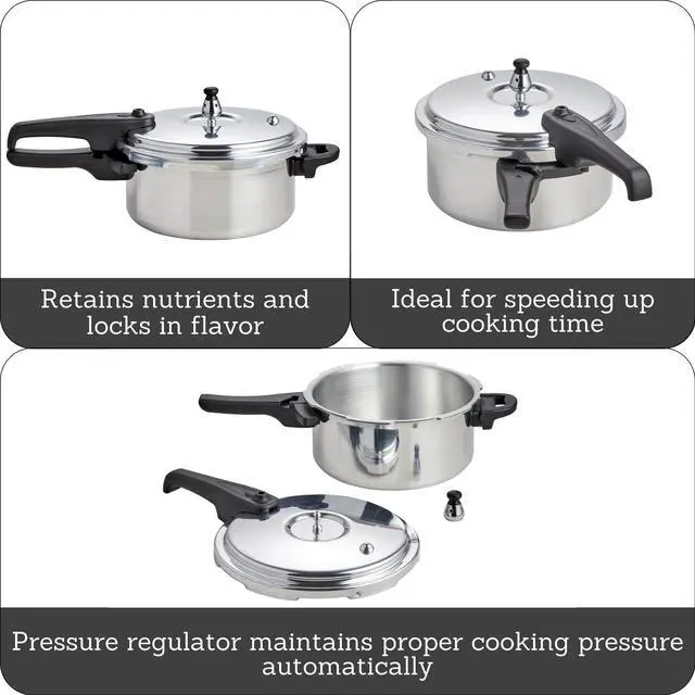 4.2 Quart Stovetop Aluminum Presure Cooker with safety valves for risk-free opening