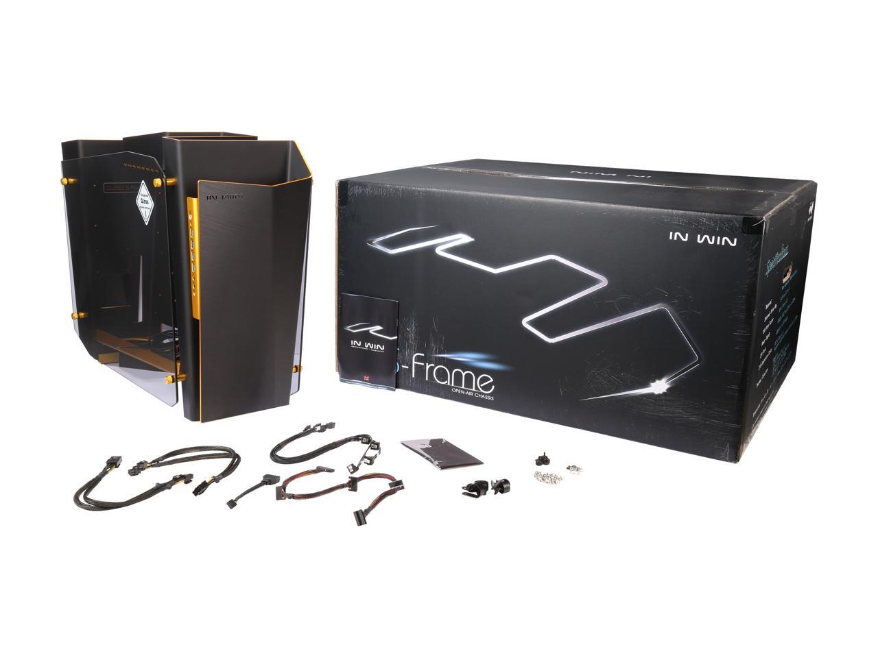 IN WIN S-FRAME (BLACK/GOLD) Black Aluminum / Tempered Glass Open-Air Computer Case Support ATX12V/EPS size(Up to 220mm) Power Supply