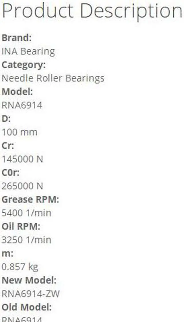 • INA RNA6914 Needle Roller Bearings-With Inner Ring 80x100x54mm