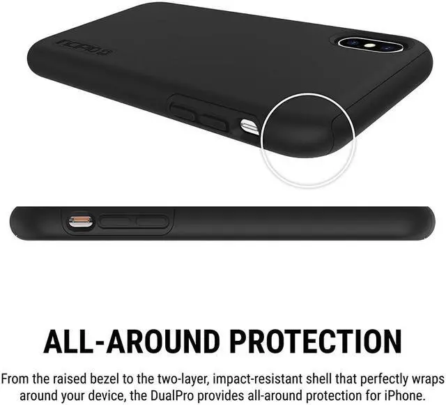 You love your iPhone XS MAX, so take the extra step to protect it from accidental bumps and drops with the DualPro-a case that's been keeping iPhones safe since Apple released its first generation. We built the DualPro case with two layers of military-grade protection that will help your phone survive up to 10-foot drops. Don't worry; two layers doesn't mean bulky-we designed the DualPro to be attractively slim, so you maintain the sleek, stylish look of your iPhone.. 2x layers of defense provides military-grade drop protection.