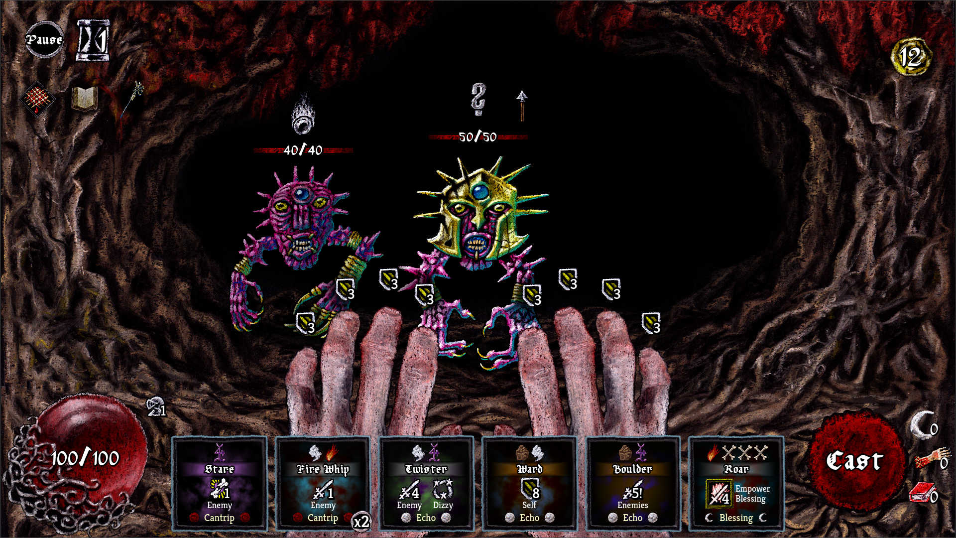You’re a wizard. A not-so-heroic wizard imprisoned for wizard crime, awoken from your wizard slumber by an invitation from your niece. Escape from jail and traverse a hostile world crawling with danger. Every turn is a frenzy of spell sigils, cracking bones, and desperate gestures as you shred through monstrosities with raw elemental power.