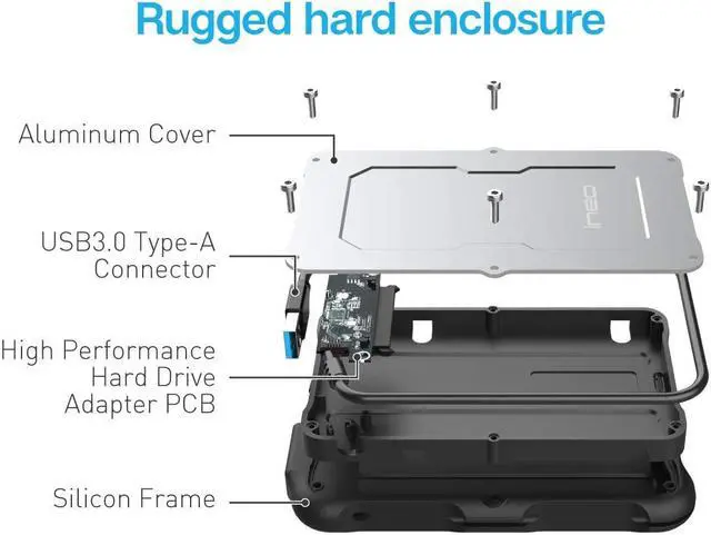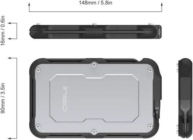 Package Contents: 1 x ineo T2580 Waterproof and Shockproof Enclosure for USB 3.0 to SATA Hard Drive1 x Screws Kit 1 x User Manual 1 x Guarantee Card