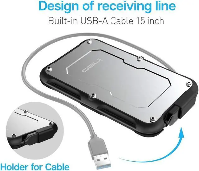 Ineo introduces an upgraded rugged enclosure with decent waterproof and shockproof function, T2580 is now released for people who look for much more secure and better protection for their important in 2.5 inch hard drives and SSDs. The solid aluminum cover plus upgraded compact silicon frame provide sturdy protection and able to hold the integrated cable tighter, and IP66-rated and MIL-STD 810-certified are still there for getting rid of concerns in your mind.