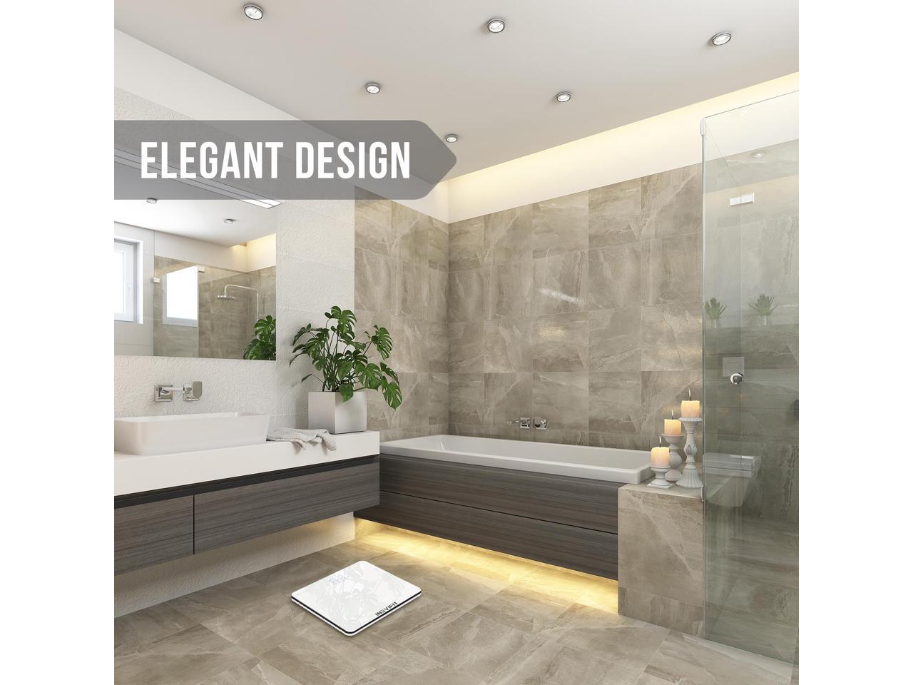- LOOKS GOOD IN ANY ROOM: No need to hide your scale! This elegant body weight scale was expertly designed in Southern California to enhance the style of the room.
