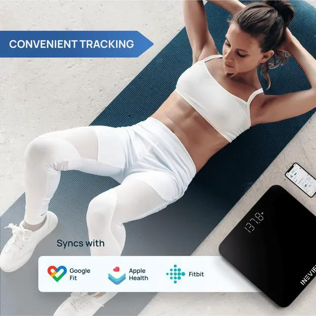 Our FREE INEVIFIT APP syncs your smartphone seamlessly to the scale and allows you to easily track your measurements with a simple touch. *Compatible with FitBit, Google Fit, and Apple Health.
