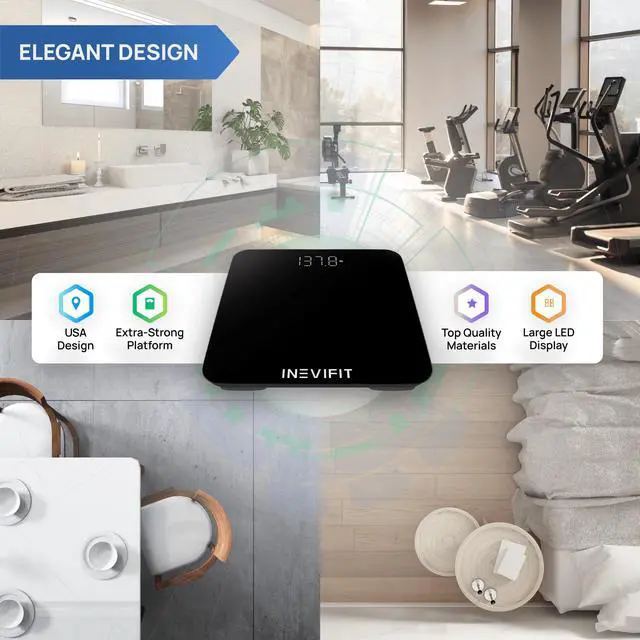 Our athletes are busy and require accuracy they can trust. The INEVIFIT Smart Premium Bathroom Scale has been manufactured with excellence each step of the way to ensure that you get a precise measurement with all the convenient features you expect. Auto On/Off, Auto Calibration, 0.2lb (0.1kg) High Accuracy, upgraded extra load 400 lb (180kg) sensors have been packaged into this beautifully engineered measuring machine that will enhance the look of any room.