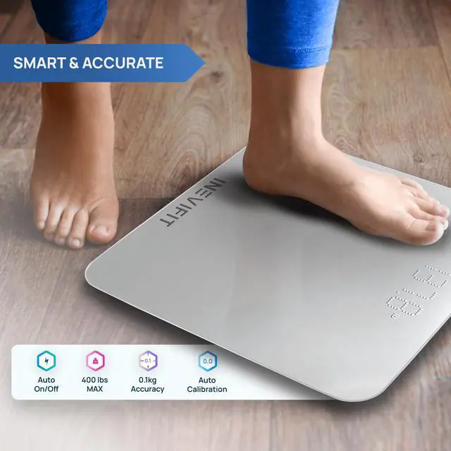Our athletes are busy and require accuracy they can trust. The INEVIFIT Smart Premium Bathroom Scale has been manufactured with excellence each step of the way to ensure that you get a precise measurement with all the convenient features you expect. Auto On/Off, Auto Calibration, 0.2lb (0.1kg) High Accuracy, upgraded extra load 400 lb (180kg) sensors have been packaged into this beautifully engineered measuring machine that will enhance the look of any room.