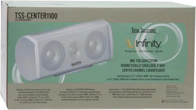 Infinity's TSS-CENTER1100 center speaker is a two-way unit that's compact enough to fit where others won't. Even though it's compact there are 2 3-1/2" drivers and 1 ¾" driver for a full rich sound. These drivers use Infinity's proprietary Metal Matrix Diaphragm technology.