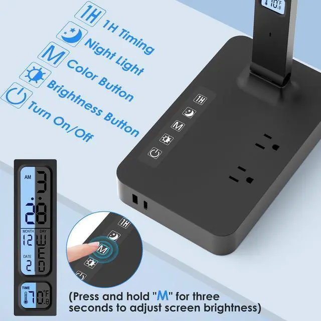 The desk lamp has multiple sockets and USB ports, saving space and meeting different works needs.