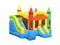 The commercial-grade Bouncing Castle Kingdom by Inflatable HQ is a large inflatable bounce house with climbing wall and slide. Features a capacity of approximately 8 children (800 pounds total). Measures approximately 18 ft. x 17 ft. at its base and is 14 ft. tall. After the day of playing is through, zippered flaps allow the bouncer to be easily deflated and taken down for storage. Bouncer is constructed from industrial-strength, 18-ounce ( 0.55 mm) PVC on all high-stress areas including the bouncing surface, mattress sides and slide. This bouncer's roof shields children from the sun and features a safety escape hatch that's quick and easy to exit in the event deflation occurs during a power failure.