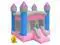 This commercial-grade Princess Bounce House by Inflatable HQ is constructed from 100% PVC vinyl, from its upright pillars and beams to its slide walls. All high-stress areas including the bouncing surface, mattress sides, bottom, and slide are made from industrial strength, 15-ounce ( 0.47 mm) PVC. This (fire retardant and lead-free) puncture-proof PVC material is approximately 5 times stronger than nylon used in inferior units as it won't tear, fade, get moldy, and it is far easier to clean. Belting reinforcement is used at key stress points, and heavy-duty, multilayer stitching is used throughout.