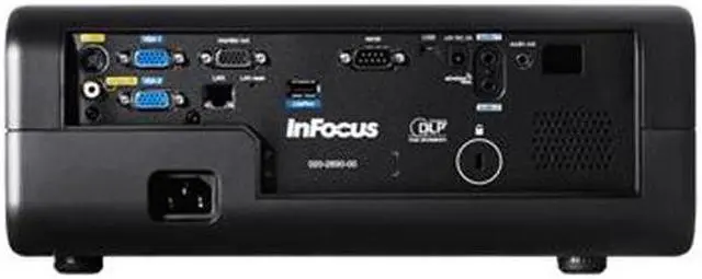 | Features | IN2112 Projector Projection Method: Rear / Ceiling / Front Two computer and two audio inputs make the IN2112 convenient for multiple users Eco Mode projects in 2400 lumens to save energy when in darker environments Maximum security with Kensington lock compatible slot and user-assigned PIN feature Send dynamic messages for instant display to your InFocus projectors using the InFocus Dynamic Messaging System (DMS) RPAU Universal Projector Mount Ships with a universal bracket to fit most inverted projectors on the market Independent roll, pitch and yaw for quick and precise projector image registration Quick projector connect and disconnect with convenient lamp and filter access on most projectors Maintains registration when disconnected and doesn't affect preset adjustments All-Points Security Systems provides exclusive steel into steel locking hardware at all connection points to protect against theft Multiple installation options: flush mount to ceiling, 0.25" threaded rod, or 1.5" NPT threaded extension column Integrated cable management through top of mount without additional accessories |