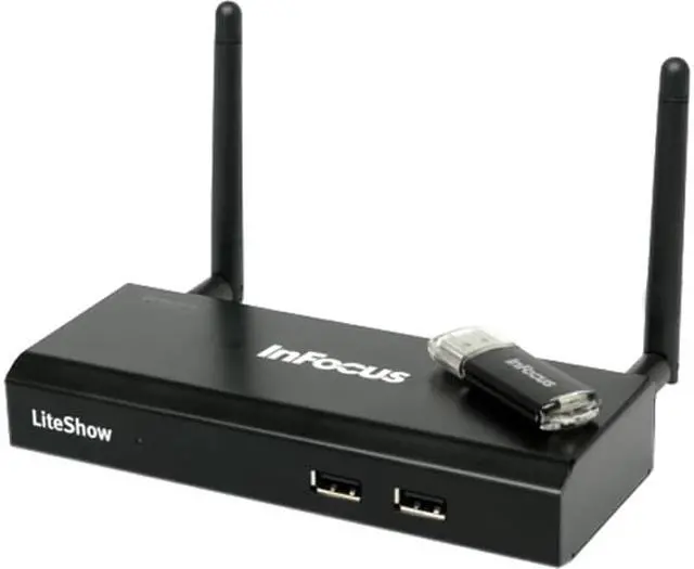 The InFocus LiteShow 4 DB+ wireless adapter turns any HDMI/VGA enabled monitor or projector into a wireless, networked display. Thus you can easily make presentations from your Windows/Mac computers or iOS/Android devices, without the limitation of cables. This adapter supports 2.4GHz/5GHz dual band, and delivers up to 300Mbps data rates for smooth, lag-free experience when sharing your data, photos and videos.