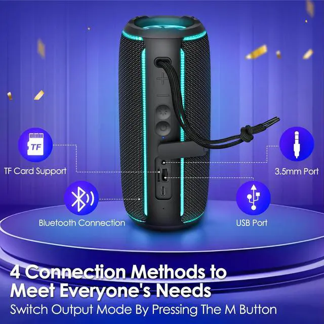 Compact Yet Mighty Design Measuring just 87mm x 87mm x 200mm and weighing 815g, the INFURTURE Bluetooth Speaker combines portability with robust performance. Its ergonomic handle strap lets you carry studio-quality sound anywherehiking trails, poolside lounging, or backyard BBQs. Cutting-Edge Tech for Uninterrupted Fun Bluetooth 5.4 & TWS Pairing: Enjoy stable, low-latency audio up to 10+ meters. Pair two speakers for immersive stereo sound. Rapid 3-Hour Charging: A 5V/1A Type-C port fully recharges in 3 hours while supporting continuous play-and-charge functionality. Military-Grade Protection: Advanced safeguards against overcharge, over-discharge, short circuits, and current surges ensure long-term durability. Built to Brave the Elements With IPX6 waterproofing, shrug off rain, splashes, or accidental spills. Host worry-free pool parties or campfire jam sessionsthis speaker thrives where others falter. The Ultimate Gift-Ready Performer Packed with pro-grade features yet simple to use, its a crowd-pleaser for housewarmings, White Elephant exchanges, or stocking stuffers. Elevate every moment with lights, sound, and unshakable reliabilityall in one palm-sized powerhouse.