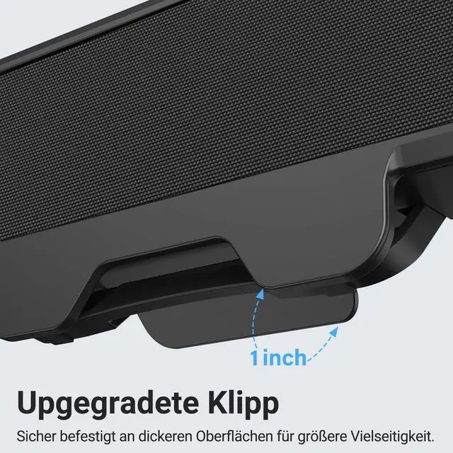 Designed for order, this computer speaker features a versatile clip with a 1-inch maximum opening. It securely attaches to the bottom, side, or top of most monitors, or stands freely on your desk—effortlessly organizing your workspace.
