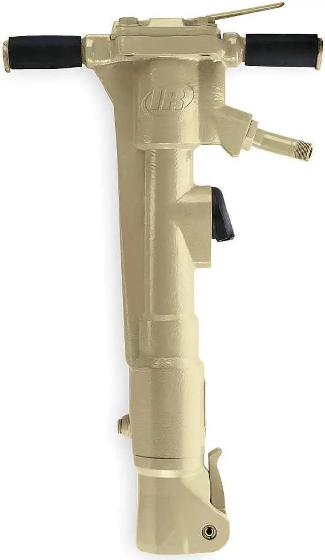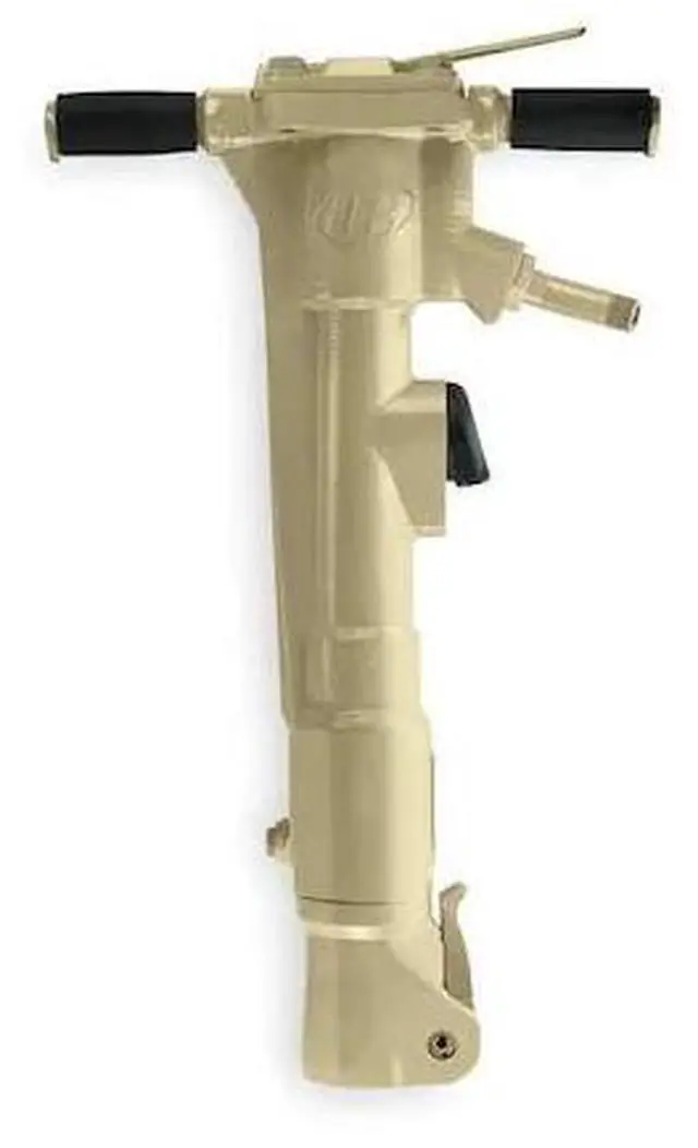 Air Paving Breaker, 60 Pound Weight Class, Shank Size 1-1/4 x 6 In., Piston Stroke 5-3/4 In., Piston Bore 2-1/16 In., 1250 Blows per Minute, 70.0 CFM @ Full Load, Required Pressure 90 psi, Air Inlet 3/4 In. NPT, Min. Hose Size 3/4 In., Overall Length 27-1/2 In., T-Grip Handle Type, Latch Retainer Type, Spring Loaded Anvil Bushing Diggers, Paving Breakers, Rock Drills, and Backfill TamperPaving BreakersMore powerful with fewer parts than competitive models. Spring-loaded anvil bushing keeps tool on work surface. 1-pc. housing eliminates side rods and springs.