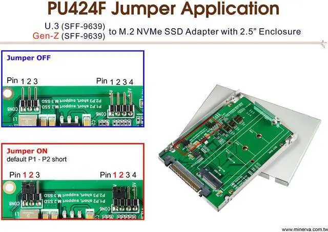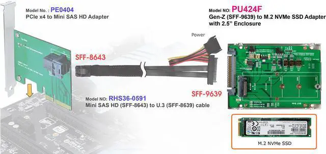 Features: * M. 2 NVMe to Gen-Z(SFF-9639) convert * Build in SFF-8639 connector, pin-out defined by SFF-TA-1001 Rev 1.1 * PWM synchronous buck converter Power for M. 2 SSD * 4A maximum output current * Short circuit protection * In-rush current suppression * Thermal shutdown protection * ESD HBM (Human Body Mode) /2KV * Supports CLKREQ#, WAKE# * Supports M. 2 / 1.8V to 3.3V SMB_CLK, SMB_DATA Level Shift * Supports M. 2 / 1.8V to 3.3V SMB_CLK, SMB_DATA isolated * Builde in SMBUS EEPROM 64KB * D1 Green LED on indicates M. 2 NVMe SSD power ready * D3 RED LED Blinking indicates M.